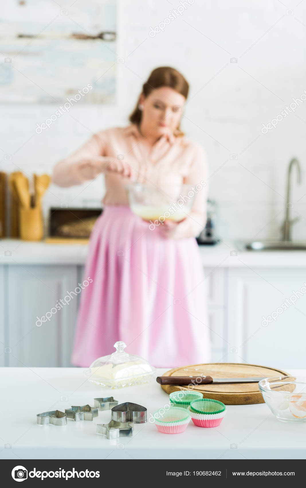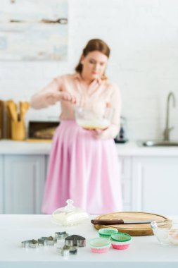 Bela Mulher Batendo Massa Com Cortadores Biscoitos Primeiro Plano Cozinha — Fotografia de Stock Grátis